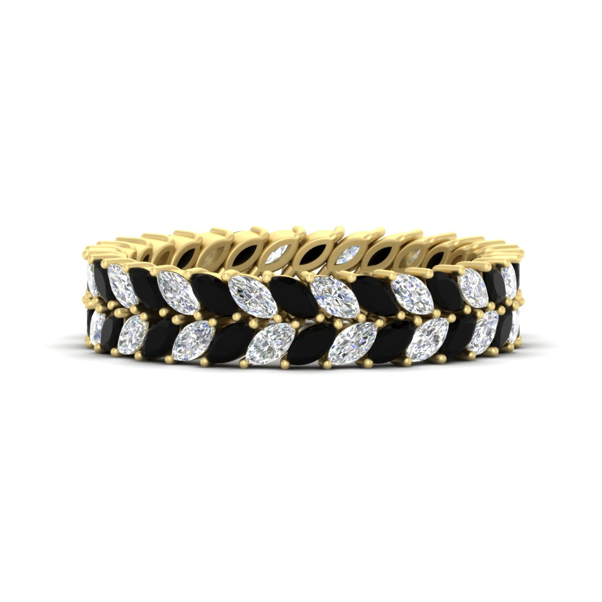 When buying a black diamond wedding band, choose a metal such as yellow gold, white gold, rose gold, or platinum for your preferred style and durability. Pick between natural or lab-grown diamonds for your band. Consider unique diamond shapes, such as princess, marquise, or baguette, and check for secure gemstone settings. Explore designs such as eternity, 5-stone, crisscross weave, nature-inspired, 7-stone, vintage, contour, and many more. Select a band that complements your engagement ring for a cohesive and striking set.
