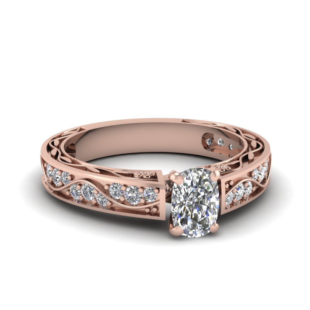 Shop cushion cut engagement rings from Fascinating Diamonds for vintage charm, elegant designs, and competitive pricing. Our rings showcase exceptional sparkle and fire, offering versatility in settings and a romantic appeal. Enjoy a lifetime warranty, easy financing, and exceptional customer support for a seamless shopping experience.