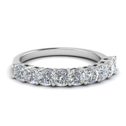 The ideal carat weight for cushion cut wedding bands depends on the design and your personal style, with popular options for bands ranging from about 0.75 to 10 carats total. Cushion cut diamonds have a pronounced light reflection, exceptional fire, especially rainbow-colored flashes. Consider the total carat weight (TCW) for practicality, as it represents the combined weight of all stones in the band. Go for a higher TCW to showcase greater sparkle in your band.