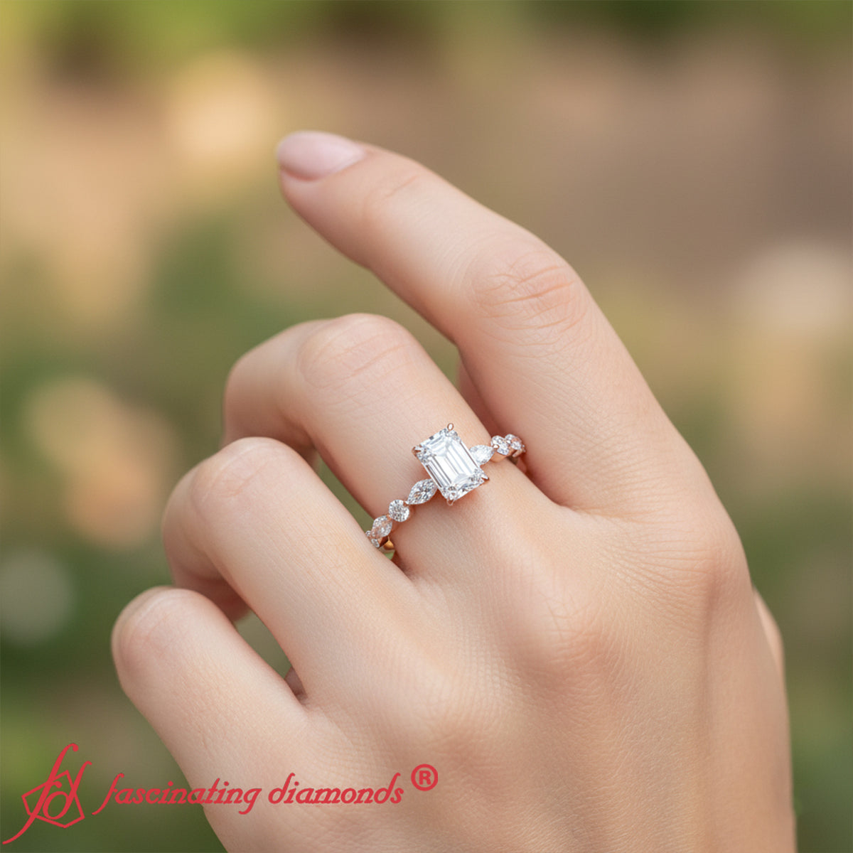 Emerald Cut: The emerald cut's step-like facets create a mirror-like glow, and its elongated shape enhances clarity, ideal for vintage or Art Deco designs.