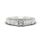 In a channel setting, the diamonds are placed in a groove between two metal strips, giving a polished and classy look. This style is highly durable because the stones are tightly held, and are a perfect choice for active people. It's common for channel set diamond semi mount rings to hold side stones and is used in different designs like wedding bands and engagement rings. The continuous flow of diamonds enhances the ring's brilliance without compromising comfort, making it a practical and stylish choice for those seeking a modern and elegant appearance.