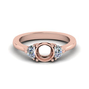 The three-stone setting features a center diamond flanked by two smaller stones, symbolizing the past, present, and future of a relationship. This design allows for personalization, as couples can choose different stone types, shapes, or colors for the side stones. This design is versatile, fitting various styles like semi mount ring settings and personal tastes, from classic to modern. The three stones together make a beautiful and unique design, perfect for couples who want to express their love story through their ring.