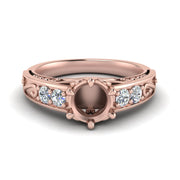Semi-mount ring settings are ideal for three-stone designs because they provide a pre-set framework for the side stones. This makes it easier for couples to choose the right center diamond that meets their budget and style, resulting in a beautiful and meaningful engagement ring.