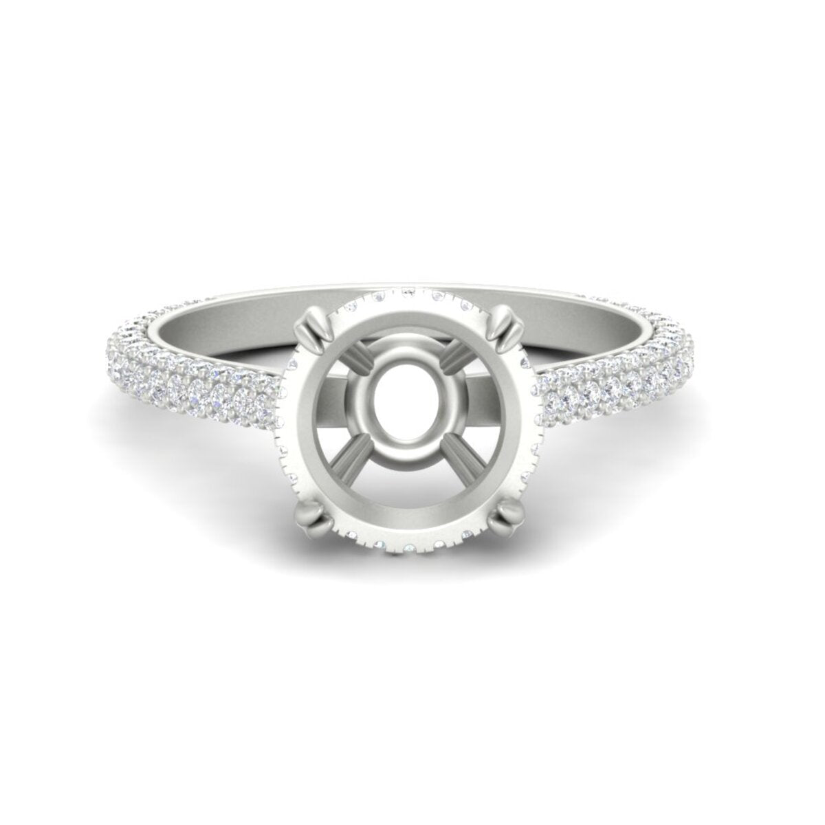 The pave setting features a band that is adorned with small diamonds closely set together, creating a "paved" appearance. This style adds stunning sparkle and depth to the ring, making it a favorite among couples who love intricate detailing. Pave settings can enhance the overall design of the engagement ring, drawing attention to the center stone while providing stunning brilliance and sparkle of the stone. It works beautifully with various semi mount engagement rings, including solitaires and halos, and is perfect for those who desire a glamorous and eye-catching piece.