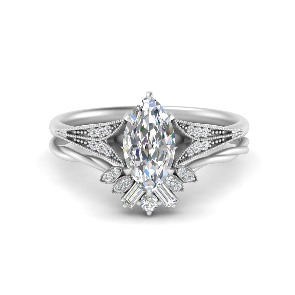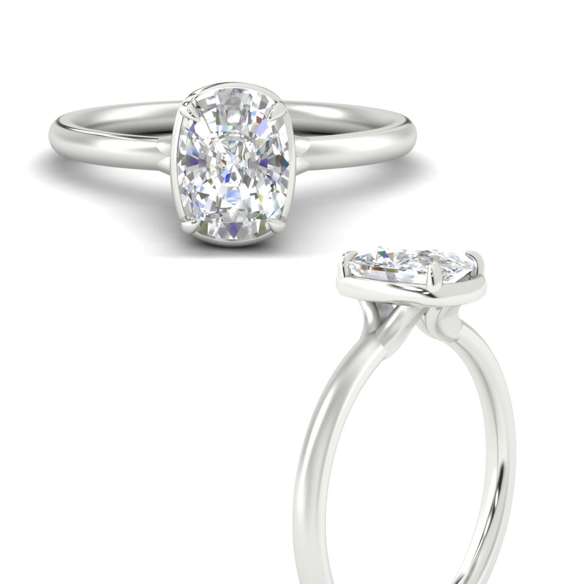 - Choose from oval, cushion, round, baguette, trillion, marquise, princess, emerald, Asscher, or heart-shaped diamonds.