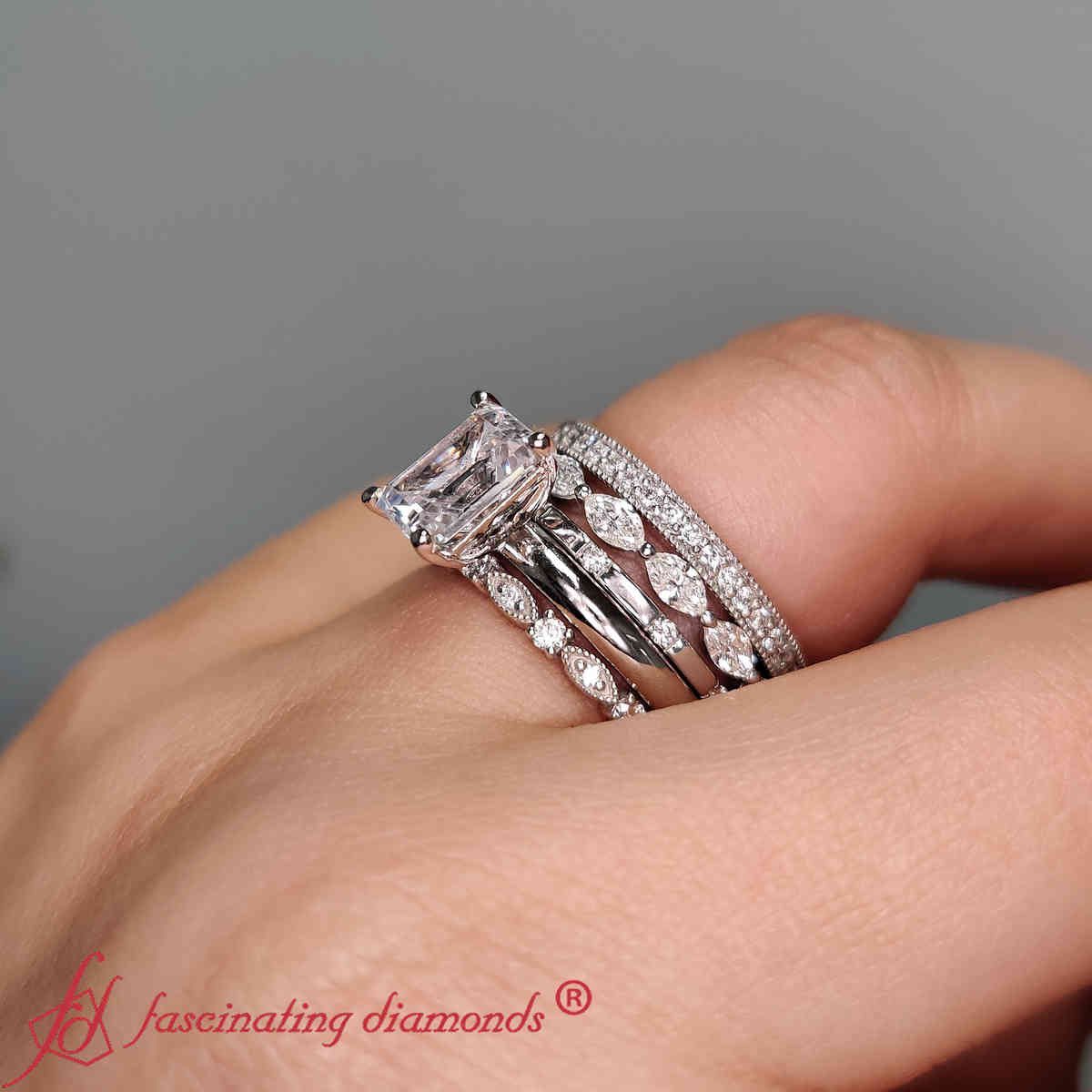 Emerald Cut Diamond Solitaire Ring With Stackable Bands Set