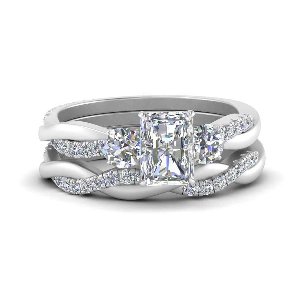 Radiant Cut 3 Stone Twist Engagement Ring And Band