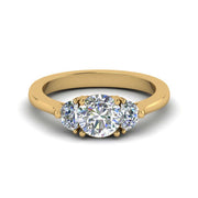 Features one center round diamond with two side diamonds. This style offers more presence on the finger and suits buyers who want a meaningful “past-present-future” design without overspending on a large single stone.
