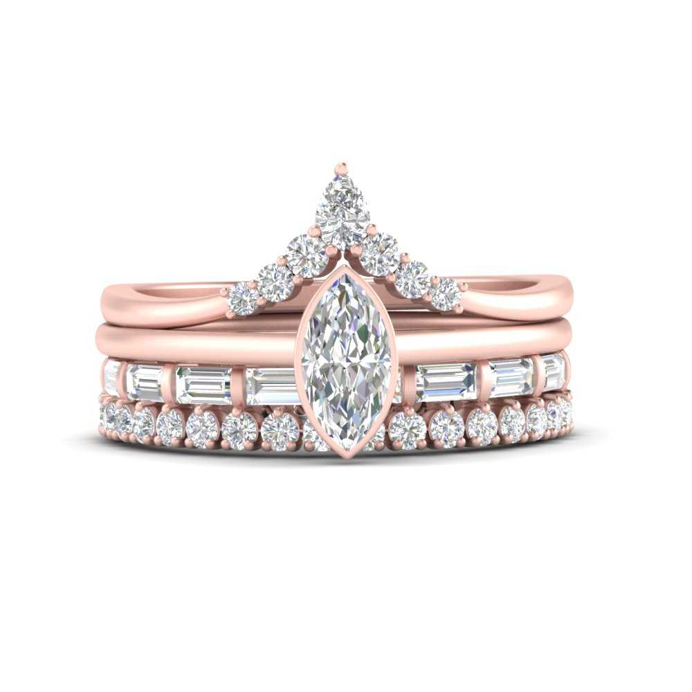 Bezel Marquise Ring With Baguette & Crown Stack Band