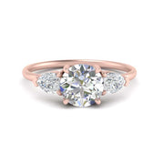 Round Cut Pear 3 Stone Cathedral Ring