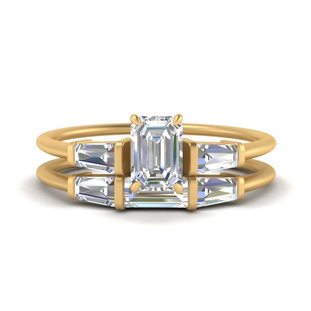 3 Stone Baguette Bar Wedding Set