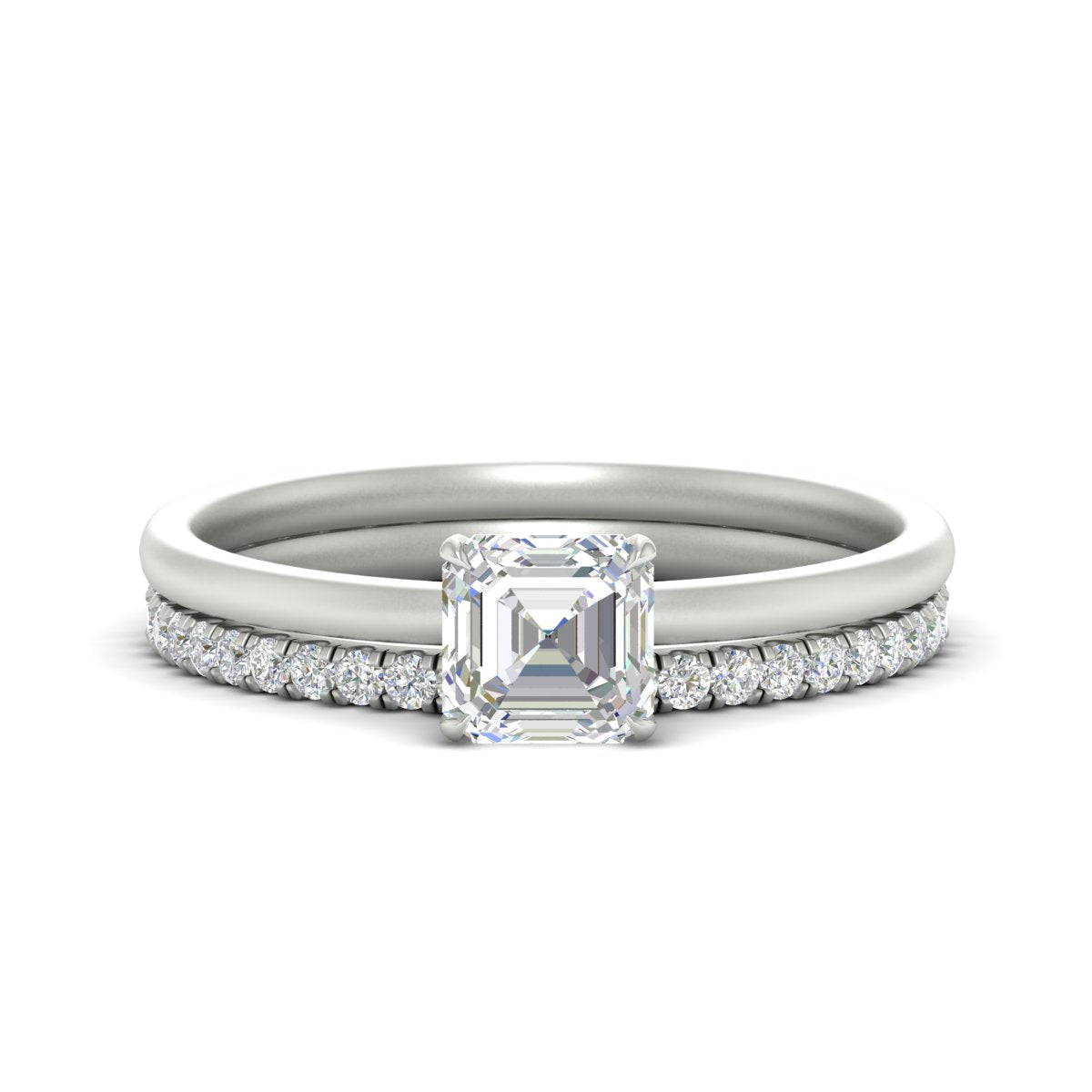 Asscher Cut French Pave Diamond Wedding Ring Set
