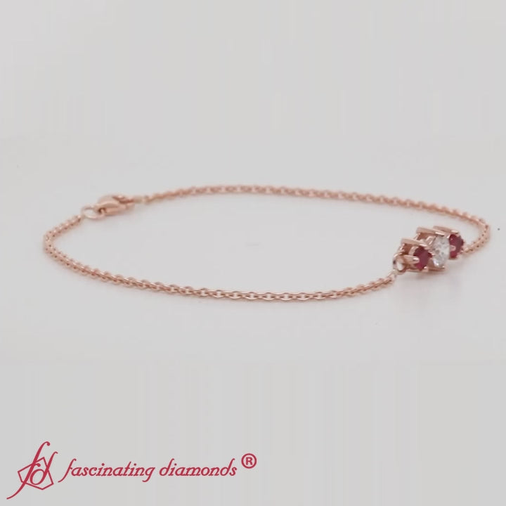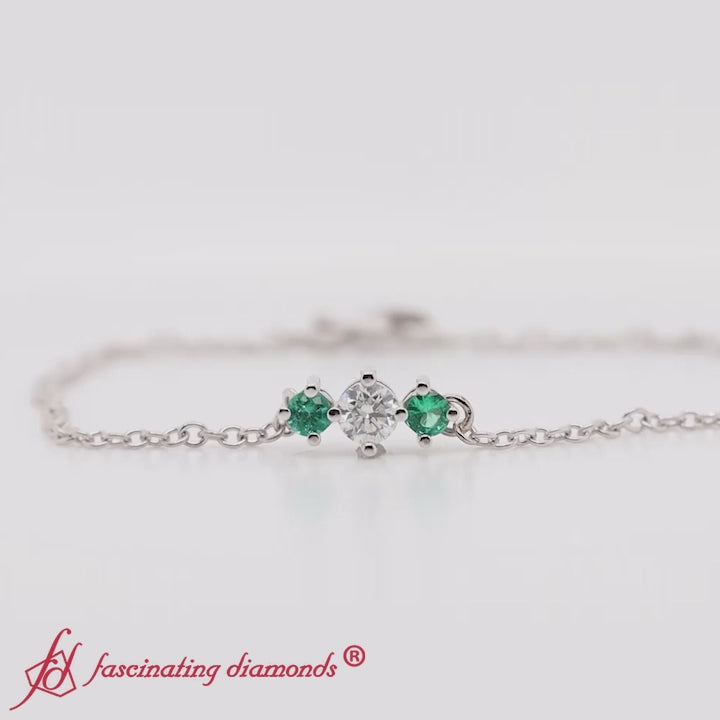 What are the accent stone details in the Dainty Three Stone Chain Bracelet?