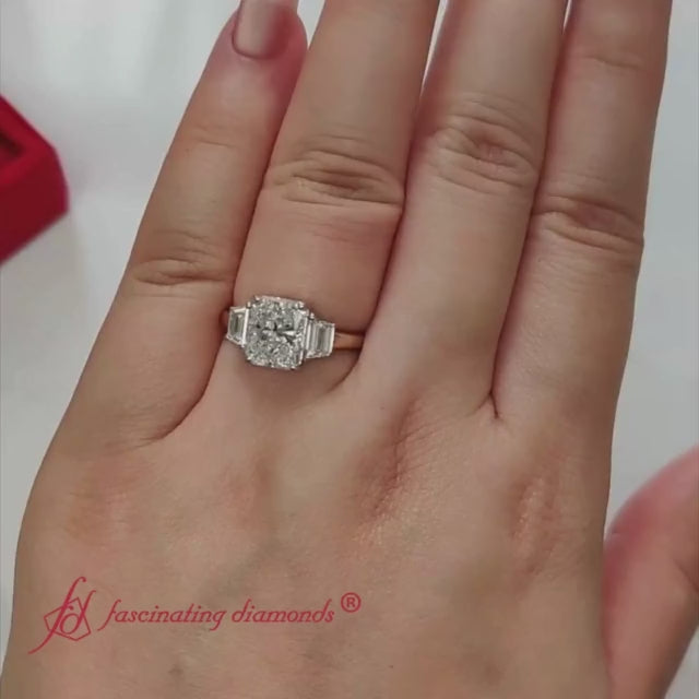 Accent Stones: The accent stones of 0.50 ct. arranged beautifully in a prong setting in the 3 Stone Trapezoid Engagement Ring. Depending on the center stone cut & carat weight, it includes two accent stones.