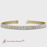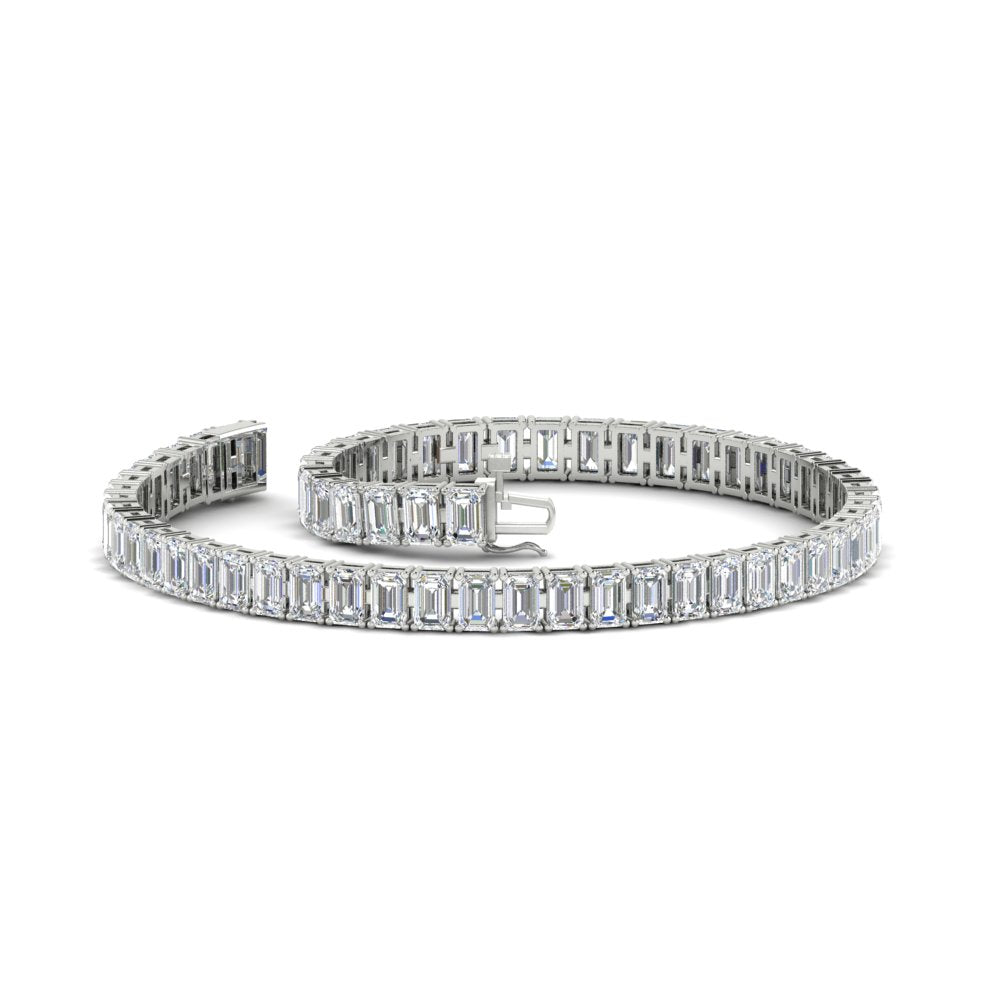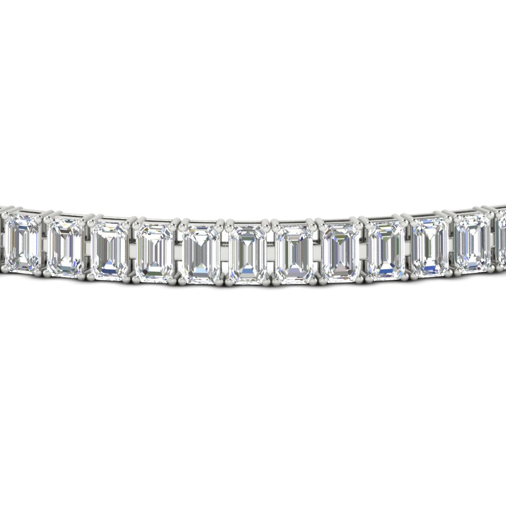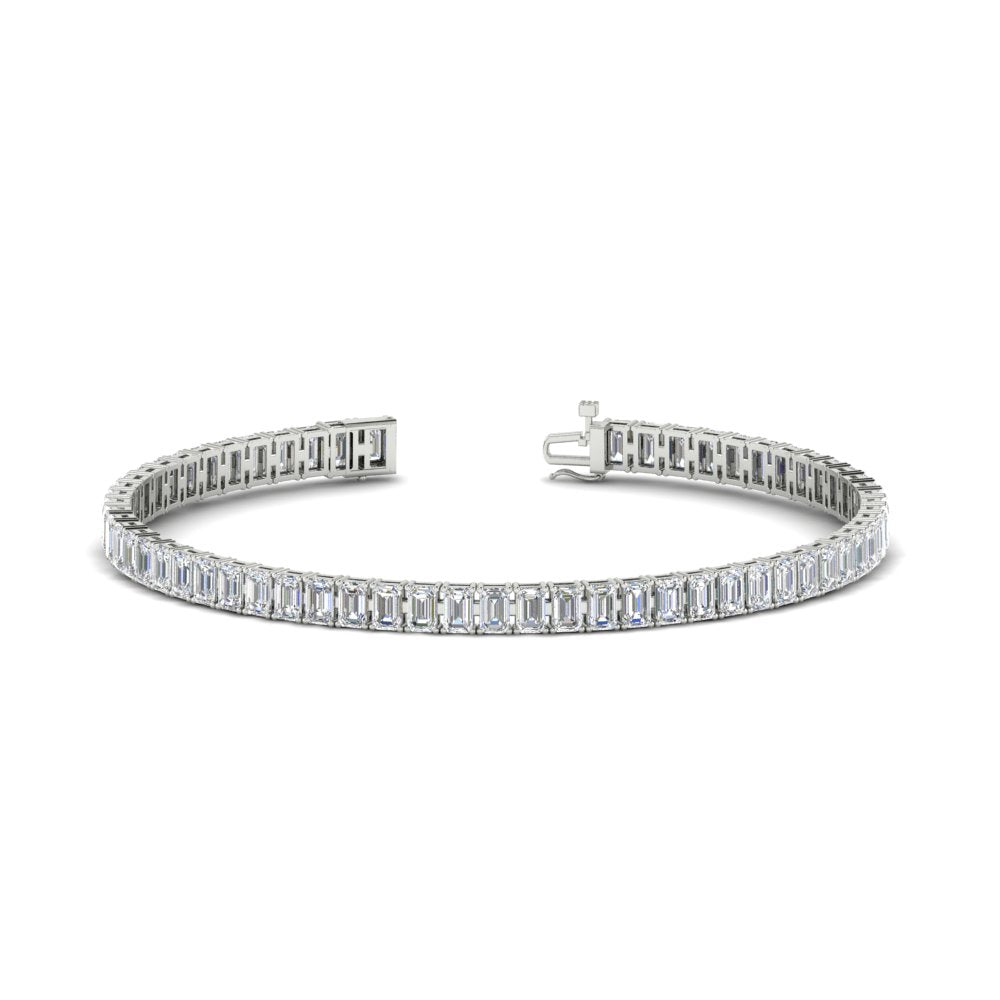 The 6 Carat Emerald Cut Diamond Tennis Bracelet from Fascinating Diamonds showcases an impressive row of dazzling diamonds, in a continuous line along a gracefully articulated chain. The clean symmetry makes it a standout accessory with unmistakable brilliance.