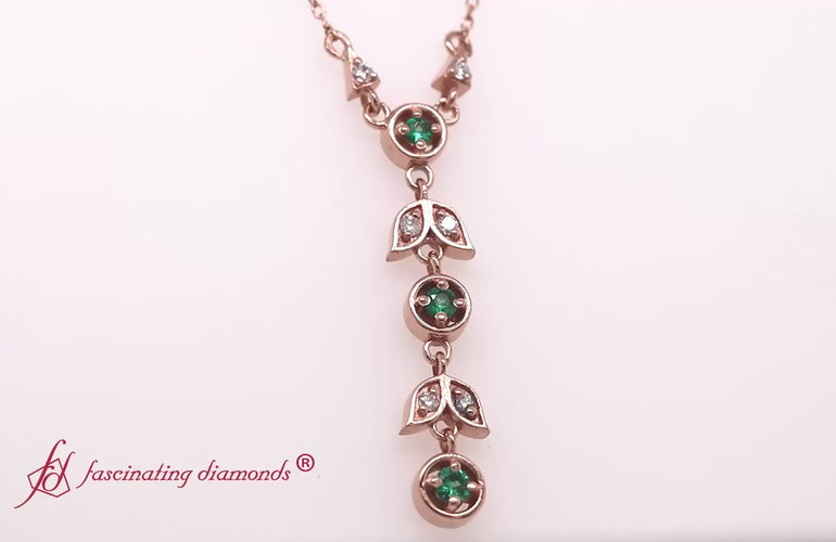 Load and play video in Gallery viewer, emerald-petal-diamond-drop-necklace-in-rose-gold-fdpd8598-fancyvideo