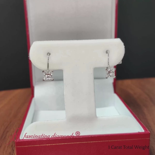 Color & Clarity Grades: The Lever Back Princess Cut 1 Ct Stud Earring comes with a VS1 clarity grade and F/G color grade.