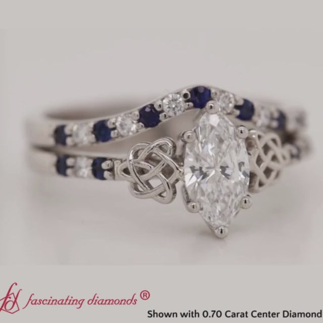 Metals: The metal options available for the Marquise Cut Two Tone Celtic Bridal Ring Set are 14K and 18K rose, white, yellow gold and Platinum.