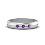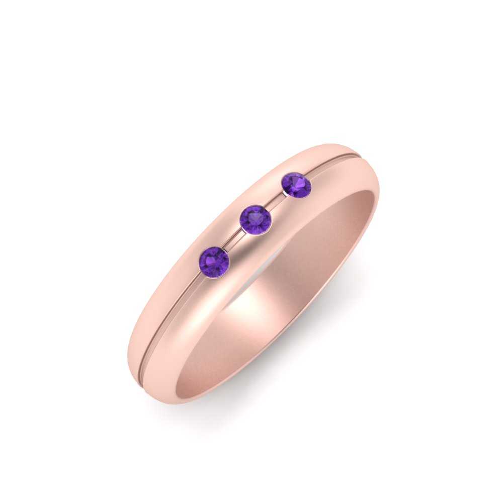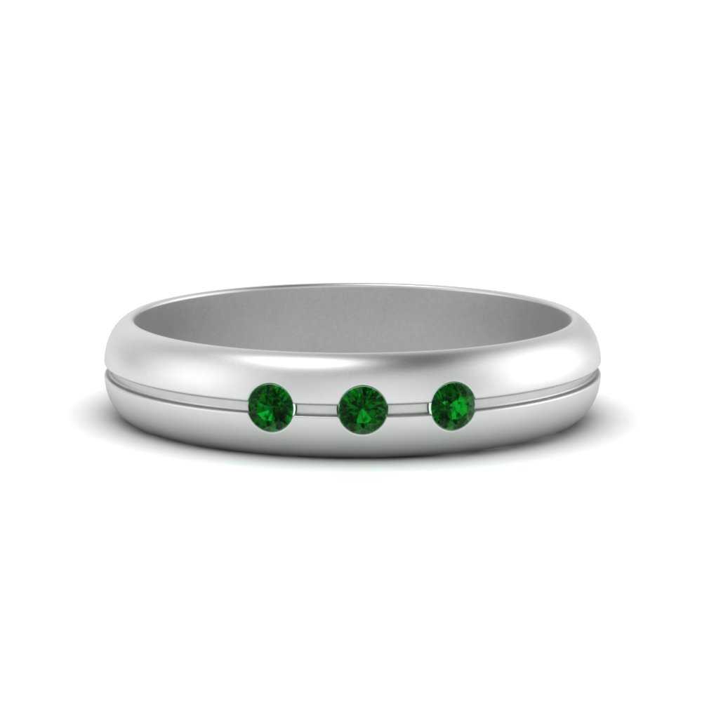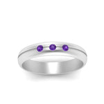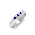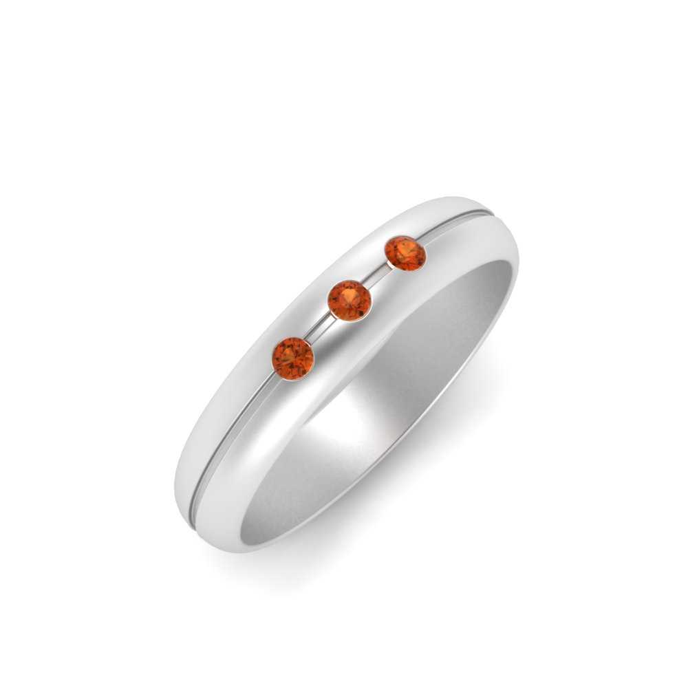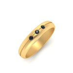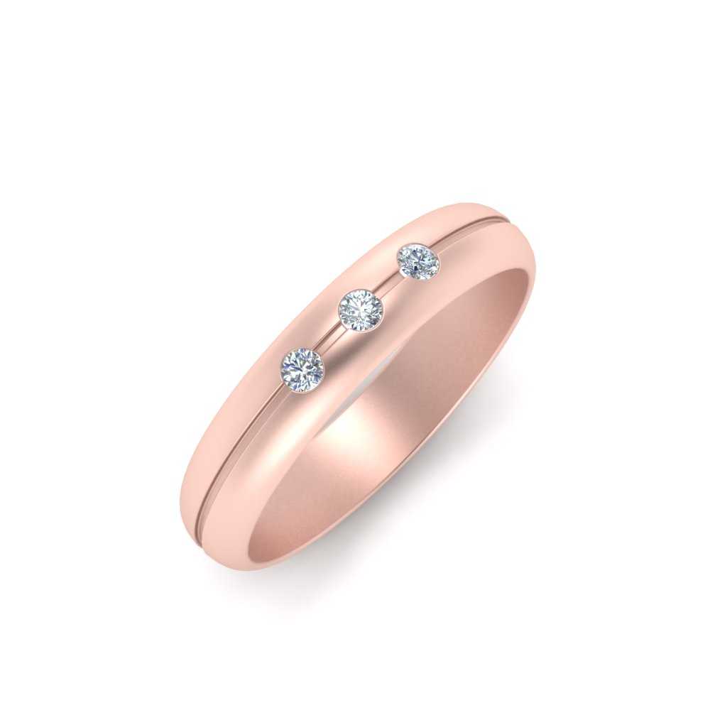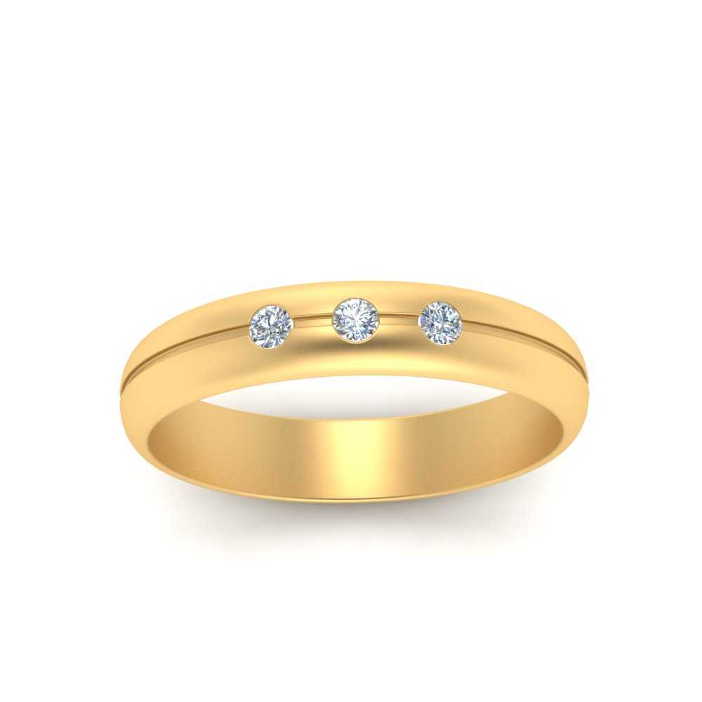 This Mens Diamond Band Ring makes for a smart-wear jewelry, with the fine luscious comfort band, carved with an immaculate groove and flushed with three timeless and ever-classic tiny round diamonds.