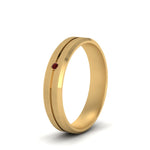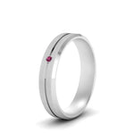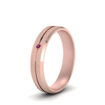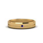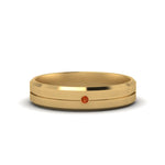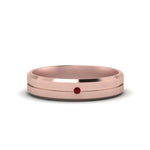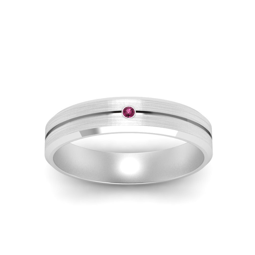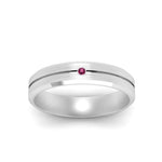 This Mens Single Stone Engagement Ring appeals you with the classic brushed finish texture all over the ring with glossy beveled edges. Further, the inlay ring is beautified with a small dazzling round cut diamond placed in the middle and held in an elegant bezel setting adding splendor to the ring.