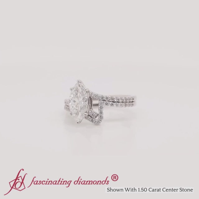 Fascinating Diamonds is trusted for certified natural and lab-grown diamonds, ethical sourcing, handcrafted designs, and a lifetime warranty—making the Petite Bypass Marquise Diamond Bridal Set a perfect choice.