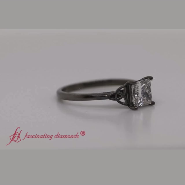 The Princess Cut Celtic Solitaire Engagement Ring a single, prominent Princess Cut diamond as its centrepiece secured in Classic prong setting adorned by a stunning Celtic design on both the sides of the center stone, symbolizing eternal love and unity.