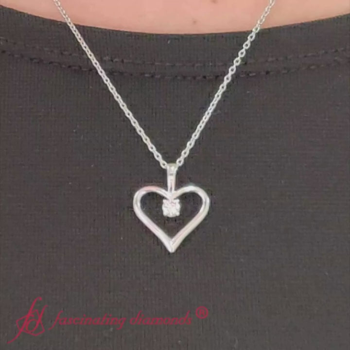This Hand-crafted Solitaire Heart Pendant from Fascinating Diamonds® beautifully captures the essence of affection and grace. A single round-cut diamond, prong-set at the center of an open heart frame, creates an elegant floating effect—symbolizing love that is strong, radiant, and everlasting.