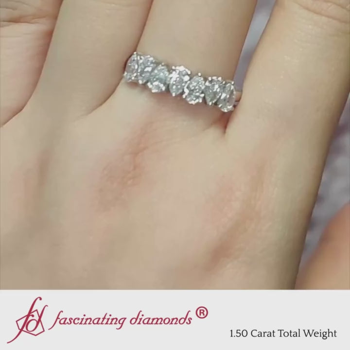 Yes, the Teardrop 7 Stone Wedding Band from Fascinating Diamonds come with certification—natural diamonds are GIA-certified, while lab-created diamonds are IGI-certified.