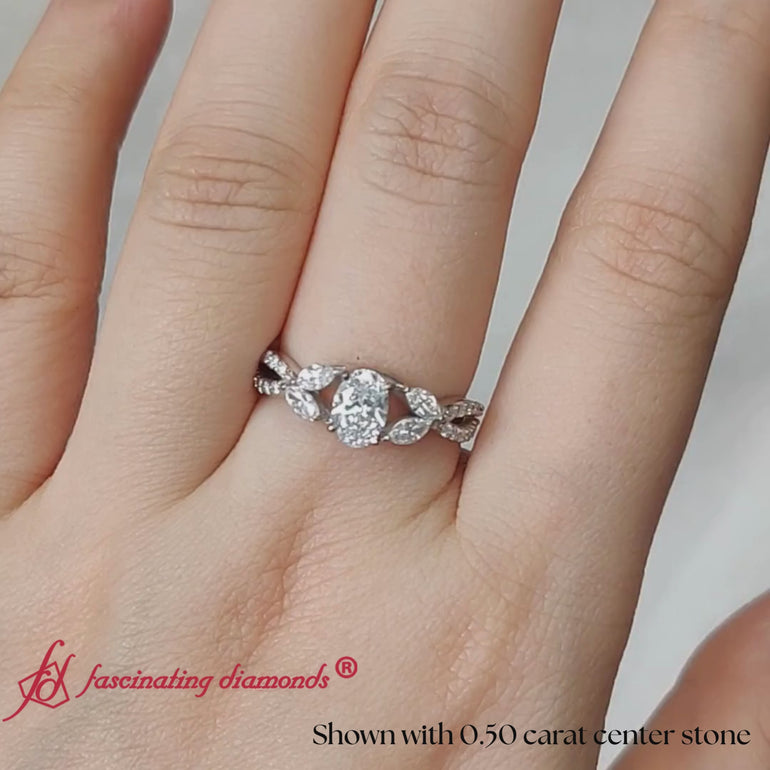 Accent Stones: The round cut and marquise cut accent stones of 0.59 ct. arranged beautifully in prong and Pavé settings in the Twisted Split Vine Engagement Ring. Depending on the center stone€™s cut & carat weight, it includes sixty accent stones.