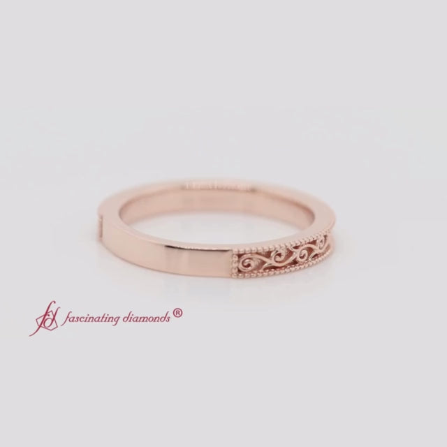 The band features intricate, hand-engraved patterns reminiscent of classic designs from past eras, giving it a timeless, vintage appeal. Each engraving is carefully crafted by skilled artisans.